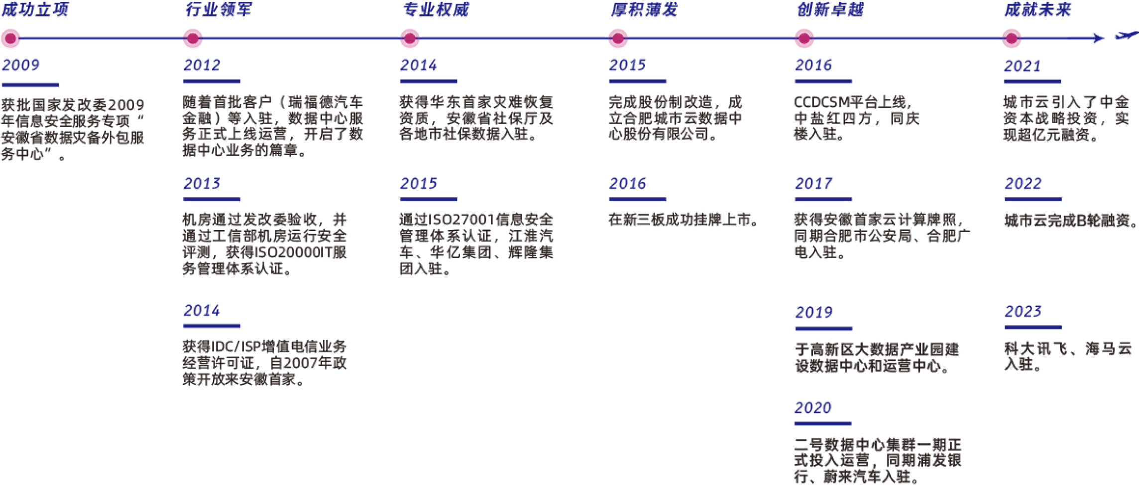 合肥城市云数据中心源自 “安徽省数据灾备外包服务中心”,由2009年国家发改委批准立项建设,面向安徽省及周边地区企事业单位提供“云计算+服务”混合云服务。目前已经在安徽省、湖南省等省份建设了四个数据中心节点。